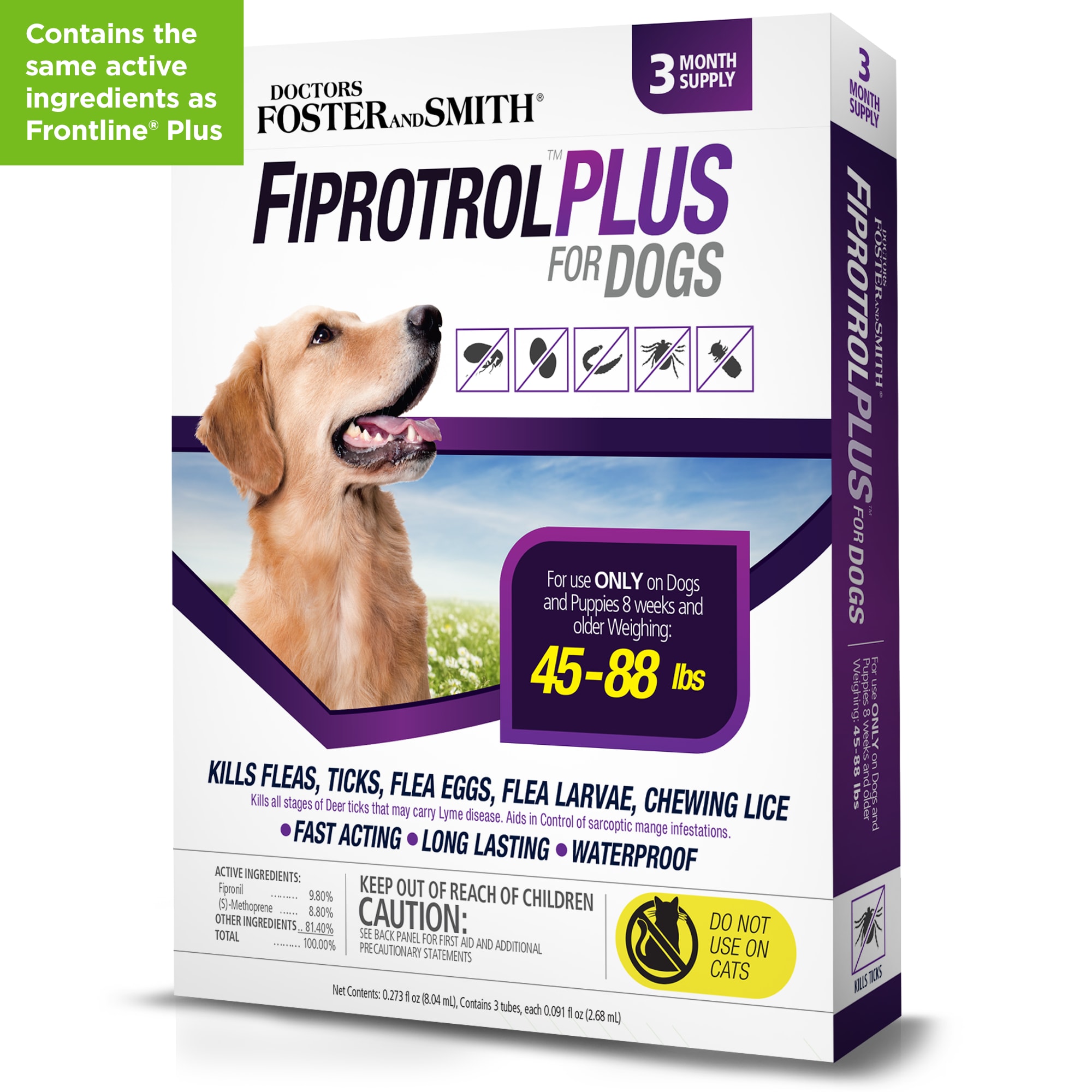 Frontline plus for dogs flea tick treatment fipronil is a fast acting waterproof topical that remains effective even after bathing.